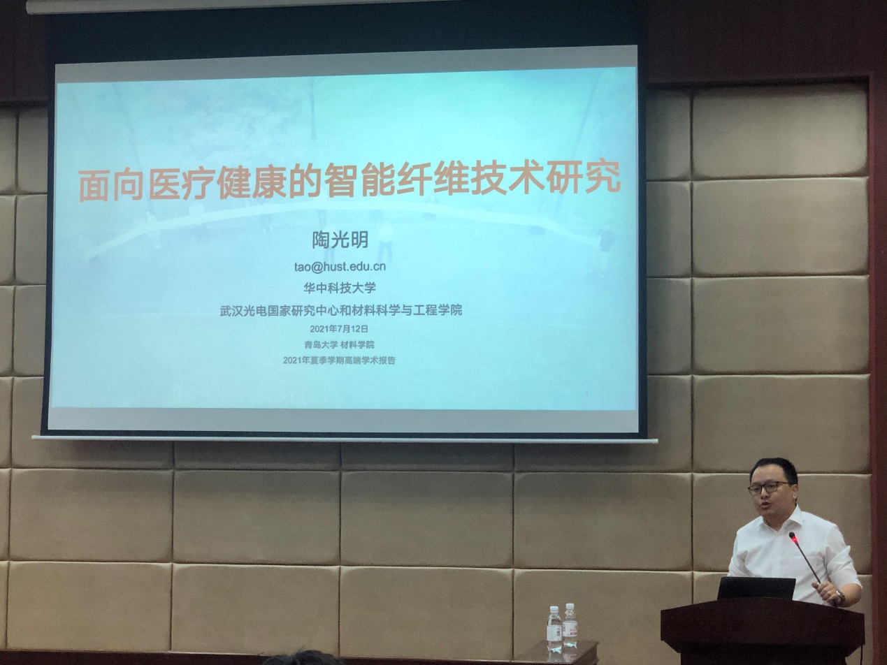 邀请,作了题为《面向医疗健康的智能纤维技术研究》的学术报告。报告由材料学院院长隋坤艳教授主持,校内外相关专业师生近200人参加了报告会。