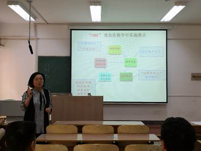 黄林军副院长针对工程教育认证的核心理念、认证标准要求、自评报告涉及的学生、培养目标、毕业要求、持续改进、课程体系、师资队伍和支持条件七部分内容及专业标准补充情况,进行了详细的讲解。学院特别邀请了材料物理与化学教研室主任马艳玲副教授做《基于“OBE”理念的课堂教学》专题报告。马老师结合所授课程详细讲解了如何将“OBE”理念落实到课堂教学中,以及“OBE”理念在教学中的具体实施要点。