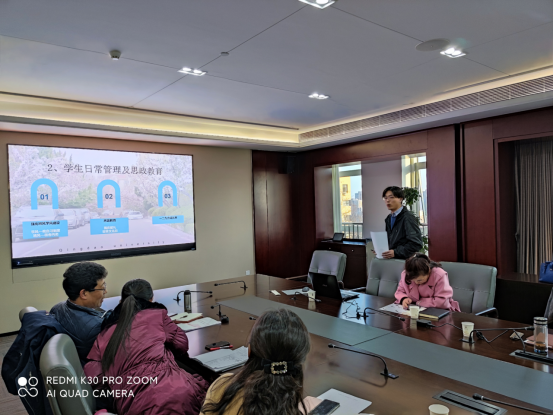 本次考核有7位内设机构负责人、6位教工党支部书记和4位辅导员分别从履职情况、工作创新与特色、突出问题与原因、2021计划与措施四个方面进行了工作汇报。万宗喜书记和隋坤艳院长分别进行了提问和点评。隋坤艳院长要求大家要有时间观念,提高主动性、发挥能动性,找准工作的点位,尽职履责。万宗喜书记在总结中认为大家态度重视、准备认真,汇报工作详实,有问题、有思考、有措施,达到了会议的效果,同时指出还存在诸如工作碎片化、思路不清、特色不鲜明、支部工作不规范等方面的不足,要求大家以提出的问题为努力方向,认真思考,谋划未来,为学院“十四五”开局之年努力工作。