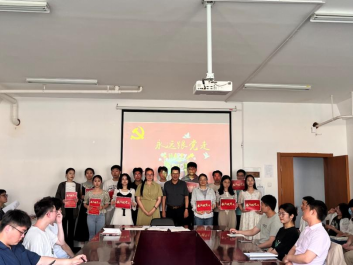 会议第二项,由硕士研究生第三支部书记王烁铭领誓,带领全体毕业生党员重温入党誓词。一次重温,就是一次升华;一次重温,就是一次鼓劲;一次重温,就是一次整装。