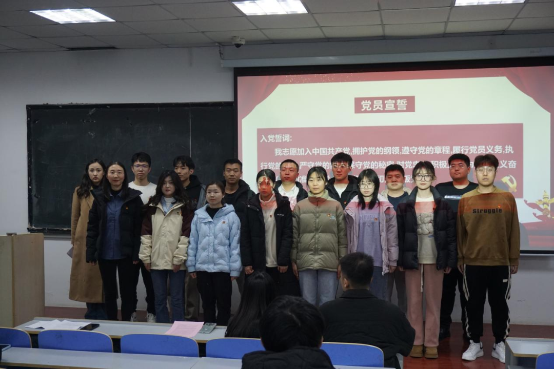 在博学楼104教室举行预备党员宣誓仪式,旨在教育引导新发展党员坚定理想信念,牢记入党初心,增强党性意识。学院本科生党支部书记宋淑婷,博士研究生党支部书记毕英娜、硕士研究生第一党支部书记张育恒、硕士研究生第三党支部书记徐千懿、硕士研究生第二党支部副书记于本涛,以及全体2024年秋季学期新发展党员和入党积极分子出席本次主题党日活动。