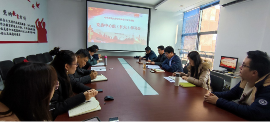 学院党委12月16日上午在科技园D404会议室召开党委中心组(扩大)学习会,会议由院党委书记万宗喜主持,全体党委委员和支部书记参加会议。