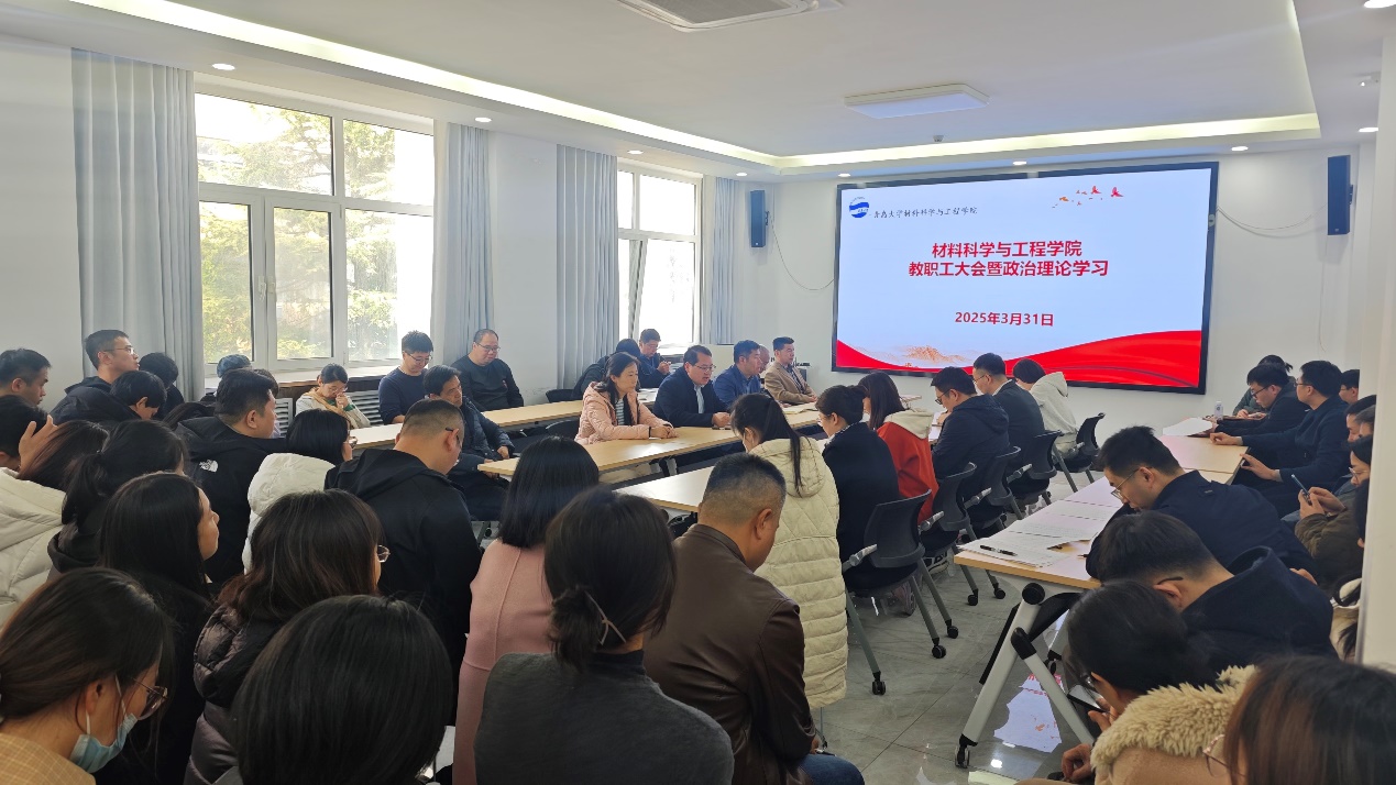 2025年3月31日,学院在慎思楼308会议室开展教师政治理论学习暨师德师风专题教育会。学院领导班子成员、全体教职工参加学习会,学院党委书记张奎勤主持学习会。