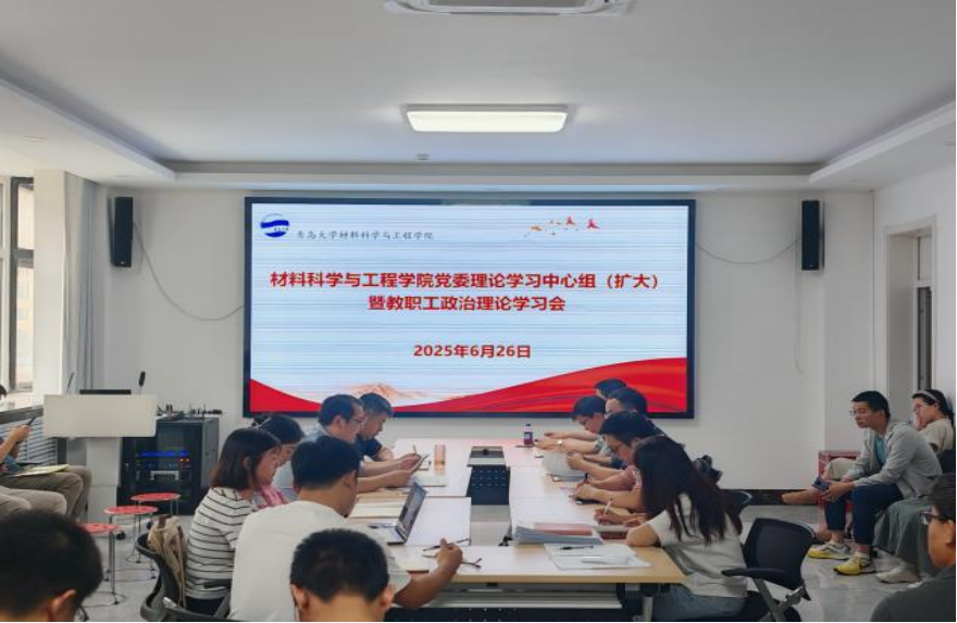 2025年6月26日下午,材料科学与工程学院党委理论学习中心组(扩大)在慎思楼308会议室举行理论学习会。会议由学院党委书记张奎勤召集,党委理论学习中心组全体成员和全体教师参加学习。