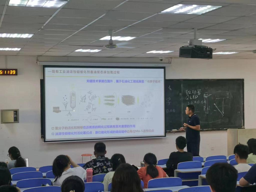 报告中,潘原老师首先阐述了资源小分子(H2O2H2O)的高效活化与催化转化在石油炼制、能源化工及新能源领域的重要性,并指出活化上述小分子的挑战。潘老师课题组紧密围绕资源小分子活化过程的单原子催化剂设计与制备及原子级调控方法展开研究,揭示催化剂的原子结构与催化性能之间的构效关系,强化小分子在催化剂上的选择活化和定向转化,实现能源与资源的高效利用和化工过程的绿色化。发展了系列单原子、双原子簇及其耦合催化剂的可控制备方法,实现了小分子催化转化活性位的精准调控;系统探究了催化剂原子局域环境、双原子簇协同催化、基于活性位原子结构的催化作用机制等关键科学问题。依据上述科学发现和催化剂制备新方法,获得了在重油浆态床加氢、电解水制氢与燃料电池等领域具有工业应用前景的高性能单原子催化剂。同时,潘老师分享了自己的科研经历与心得。最后与师生进行了热烈的讨论。相信通过本次讲座,同学们将大大开阔自己的眼界,丰富自己的专业知识。