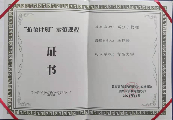 近日,教育部在线教育研究中心公布了首批拓金计划示范课程名单,苏畅av 马艳玲副教授主讲的《高分子物理》课程成功入选,该课程将在学堂在线平台面向全国教师开放观摩。
