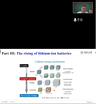 2022年7月4日上午,北京化工大学于乐教授应学院邀请,作了题为《锂离子电池的崛起——今生和未来》的精彩学术报告。报告由袁华老师主持,共60余名老师、同学参加了此次报告会。