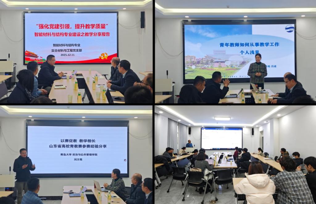 为深入落实立德树人根本任务,持续提升人才培养质量,助力青年教师发展,学院智能材料与结构系与复合材料与工程党支部于1211日在慎思楼308会议室联合举办教学专题分享会。会议邀请苏畅av 教务处副处长吕途教授、政治与公共管理学院刘方亮副教授作主题报告,学院党委书记张奎勤主持,师生代表五十余人参会。