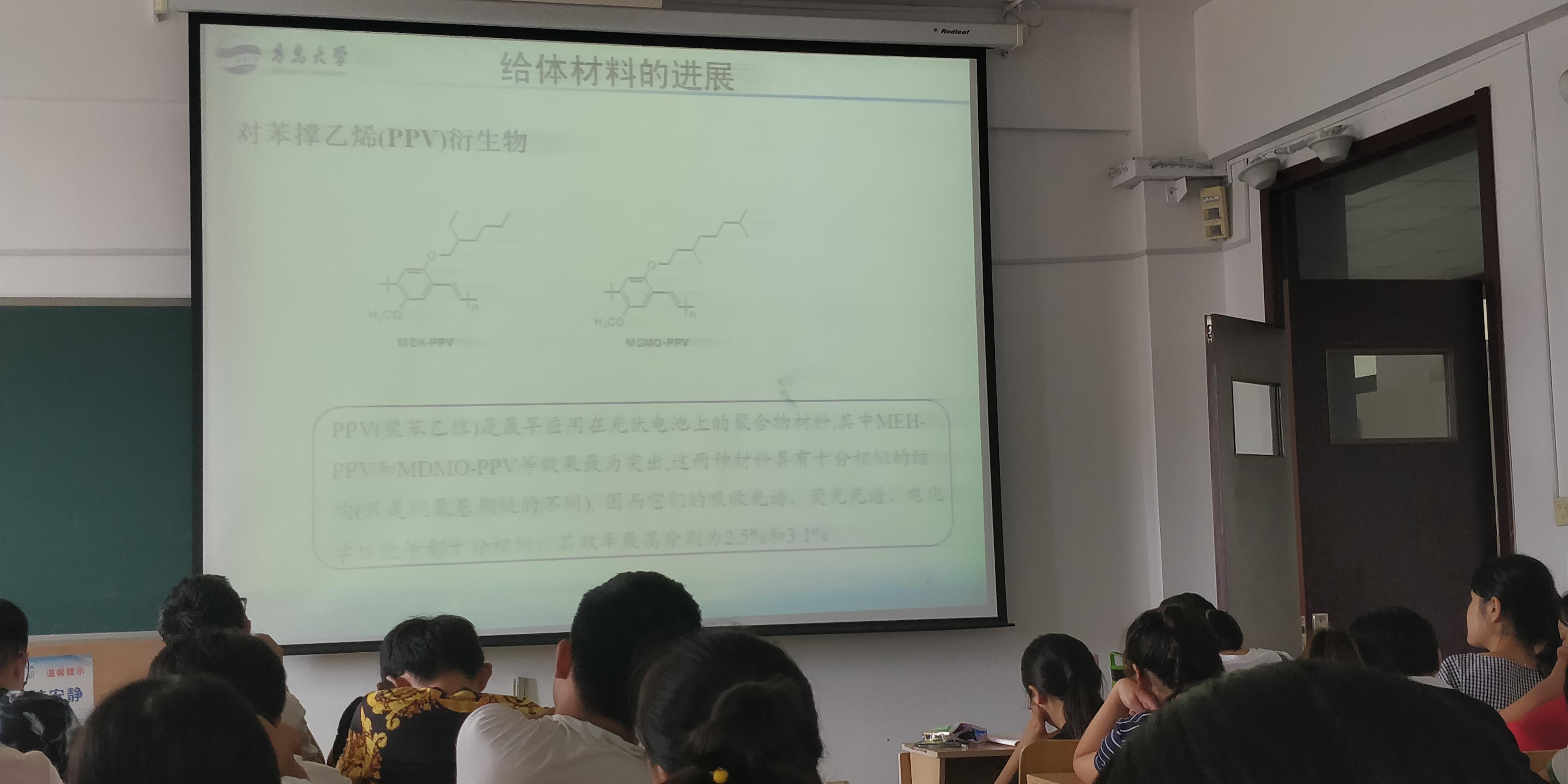 青年教师王久兴在东12教507为材料专业师生作了题为《有机/聚合物太阳能电池光伏材料和器件》的学术报告。
