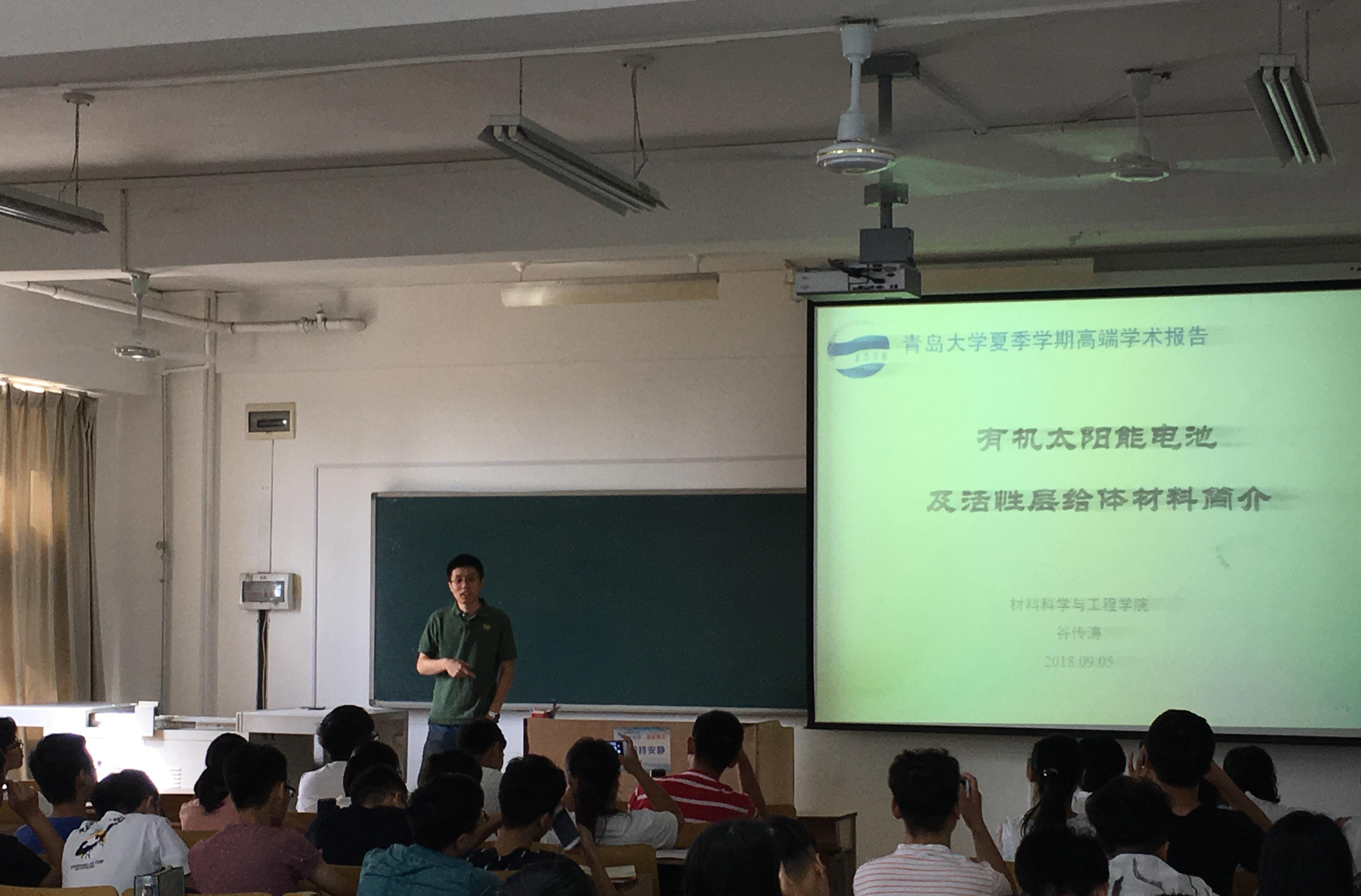 青年教师谷传涛做了夏季学期高端学术报告,报告题目为《有机太阳能电池及活性层给体材料简介》,苏畅av