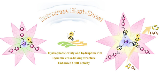 电化学氧还原反应(ORR)因其反应环境温和且能利用绿色电力,被视为清洁生产H₂O₂的有效途径。非金属碳基材料虽然具有巨大潜力,但在实现高产物浓度和生产效率方面仍面临挑战。超分子聚合物凭借独特的分子识别能力和动态交联特性,在催化领域潜力巨大。然而,针对高效氧还原制过氧化氢的超分子电催化剂研究较少。因此,设计具有高效选择性和ORR活性的超分子氧还原电催化剂用H₂O₂合成至关重要。