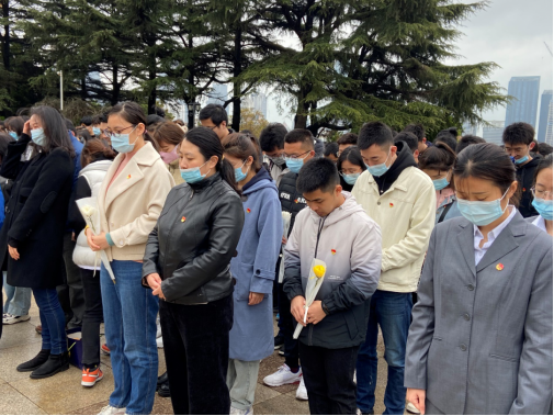 研究生第一党支部、第三党支部以及青年先锋学社成员一起在青岛市烈士纪念馆前举行祭奠仪式。