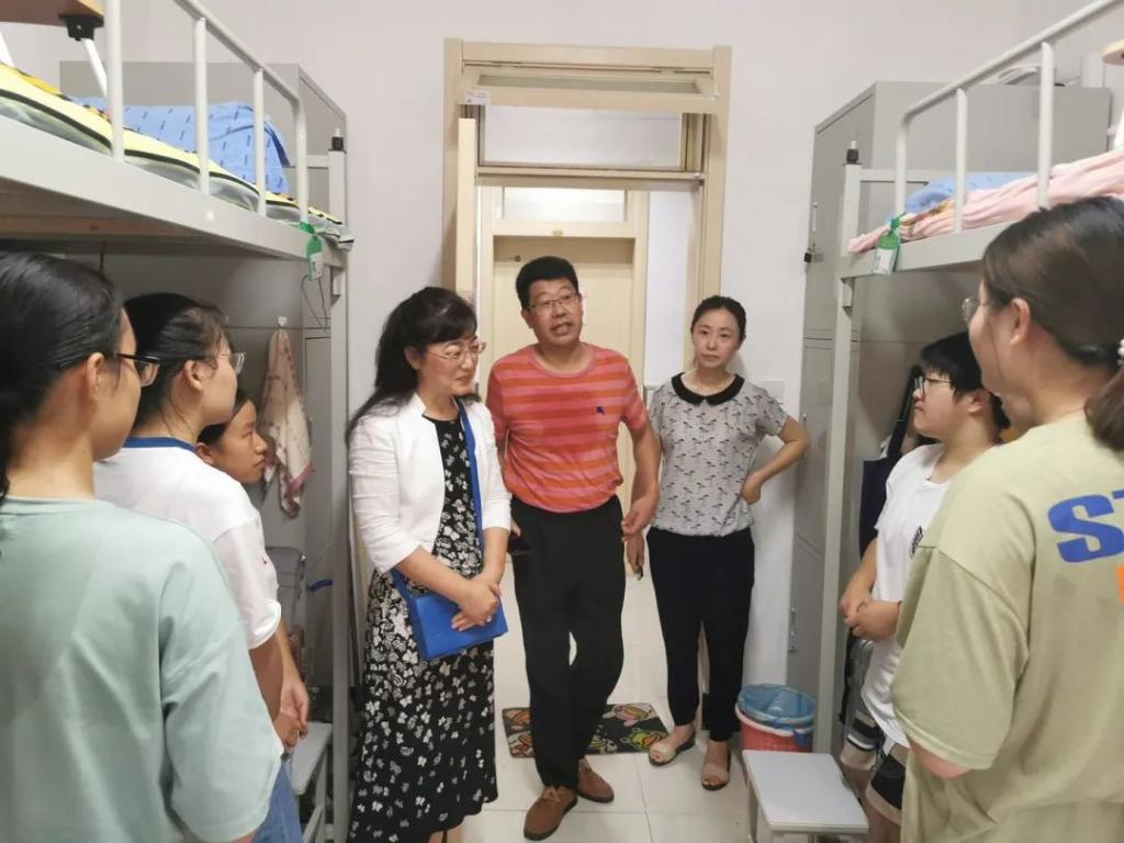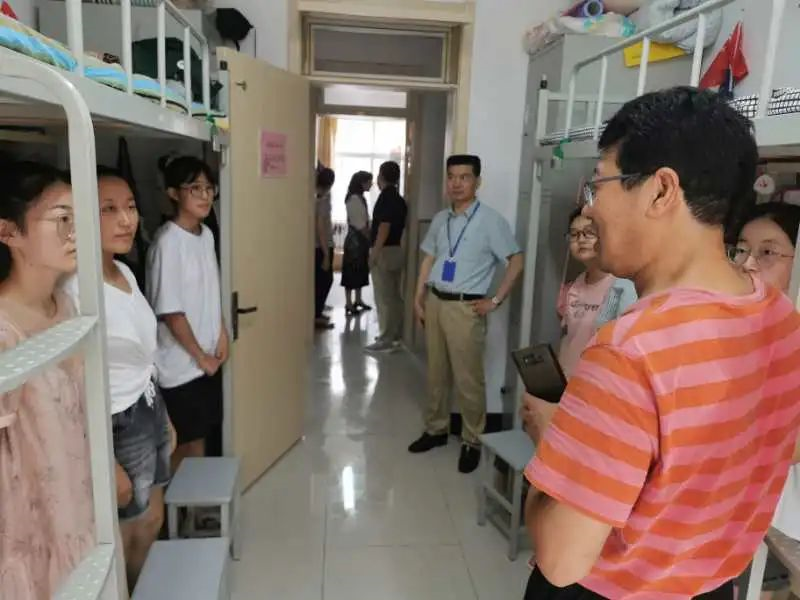 党政领导班子陪同下来到宿舍看望学生。