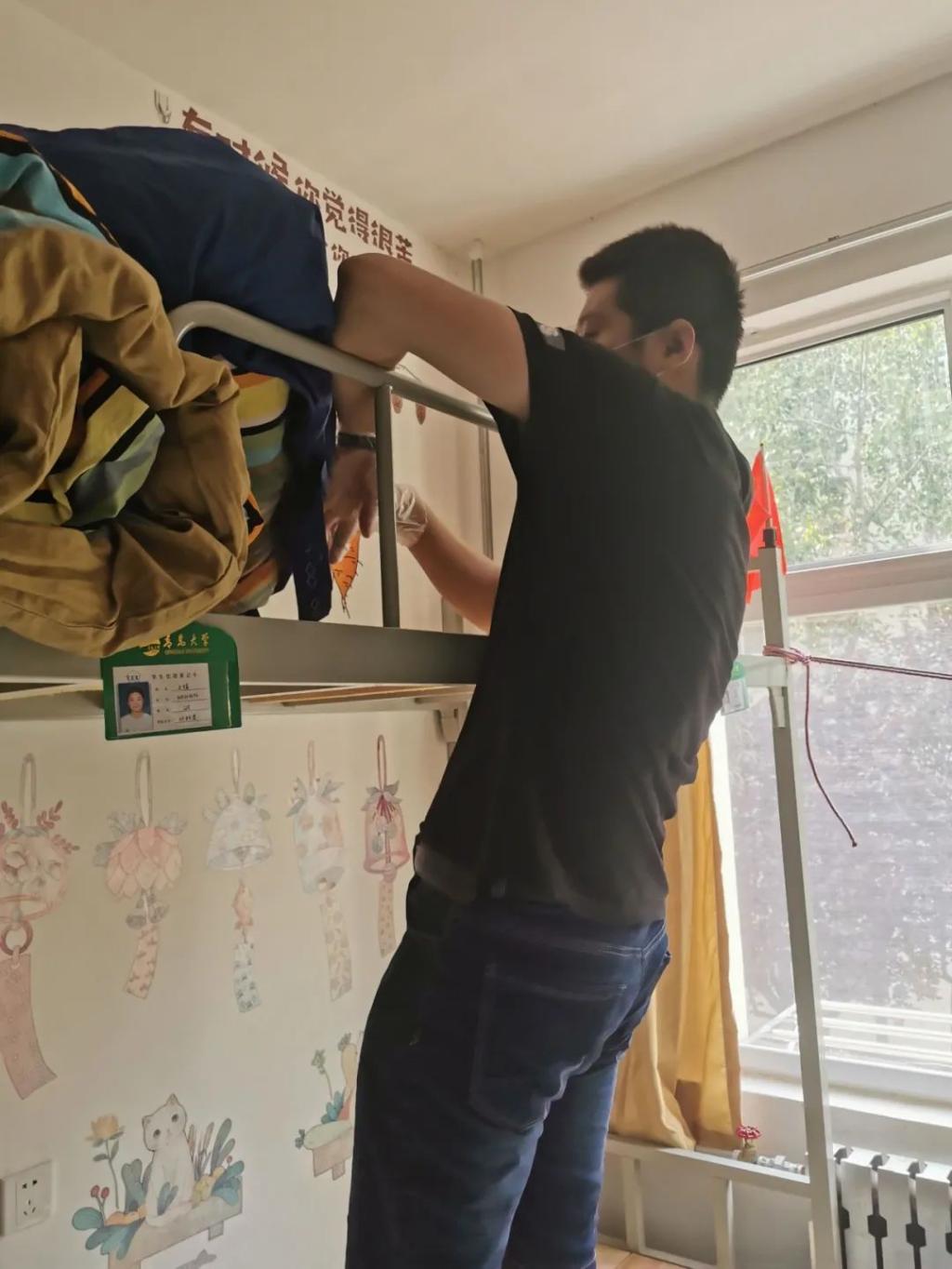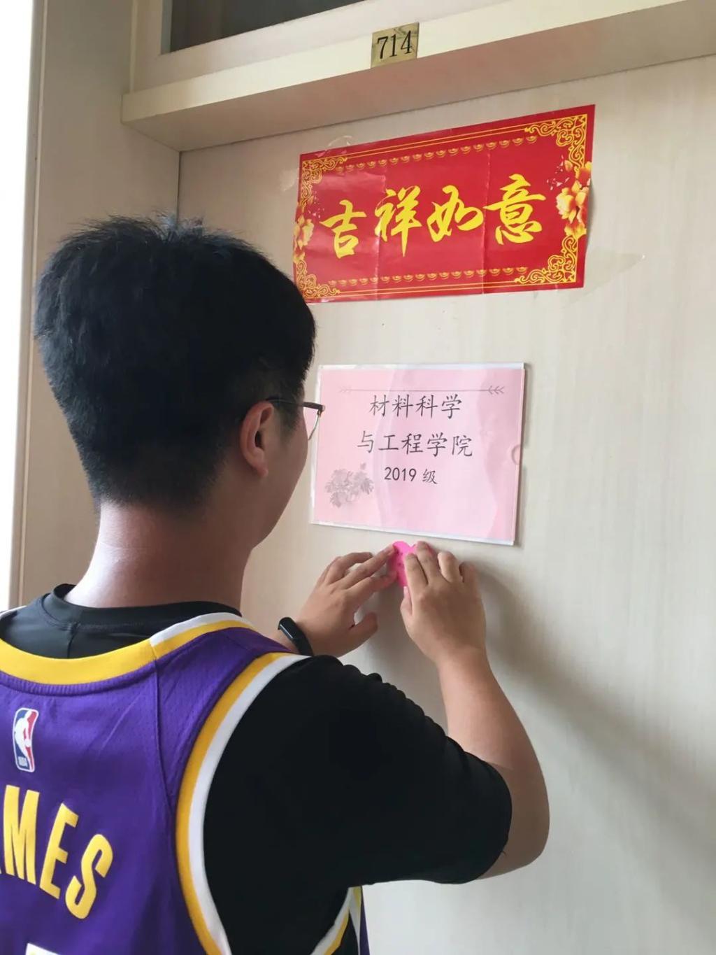 党委副书记曹俊、辅导员郝晓丽、刘无双、林国红就带领19名研究生党员、学生干部志愿者来到浏园C、汇园德正楼、滢园6号及11号楼的65间学生宿舍,为436名即将返校的学生开窗通风,迎接他们回家。开启尘封的大门、推开久闭的窗户、检查宿舍情况、送上贴心的祝福,从一栋楼,到一个房间,再到一个床位,都仔细确认,最好的保障带给最亲爱的小材料er,相信再见时,仍是那个温暖幸福的小窝。细心的学长学姐们还给师弟师妹们贴上了暖心的欢迎词,这一系列的举动,打破了宿舍中长久的孤寂,带来了和风暖阳,也期待着我们的相逢!