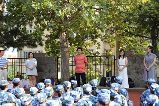 2019年9月12日下午,学院党委书记万宗喜、院长隋坤艳、党委副书记张新柏、团委书记刘无双、2019级辅导员林国红老师来到新生军训场地,亲切慰问2019级军训全体参训教官和同学。