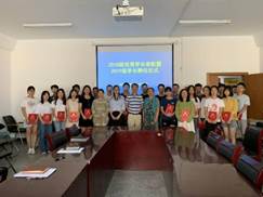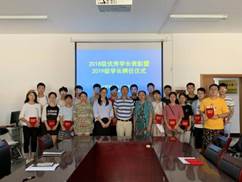 2019年度学长表彰聘任仪式在科技园406会议室举行,学院党委副书记张新柏老师、学院学工办主任郝晓丽老师、团委书记刘无双老师、19级辅导员林国红老师出席,研究生会、学生会的学生干部以及各班班长团支书参加了此次会议。
