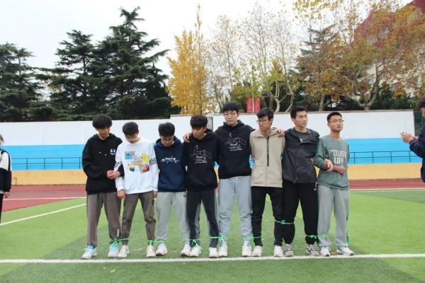 这是八人九足的游戏,是对团队合作的挑战,各个班级的队伍能否同心协力,勇往直前。