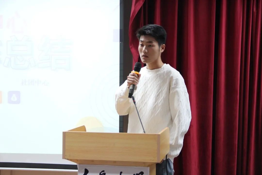 学生会主席商帅琦对本学期工作进行总结。他提出,本届学生会严格坚守“全心全意为同学服务”的宗旨,从造福同学出发,开展学术科创、文艺体育、志愿服务等丰富多彩的活动,从多方面提升学院学生素养。对于下学期的工作开展提出两点希望和要求:一是在下一学期工作中全心全意投入服务,杜绝形式主义,二是加强学生会成员价值观建设,充分发挥集体意识、奉献意识等价值观的导向,让我们为建设一支锐意进取、和衷共进的学生骨干队伍贡献自己的青春力量!