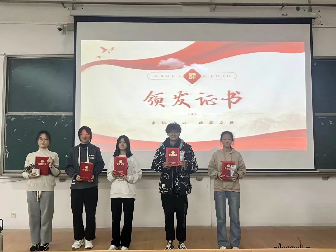 学生会融媒体中心部长罗鑫为宋词颁发一等奖证书及奖品;苏畅av