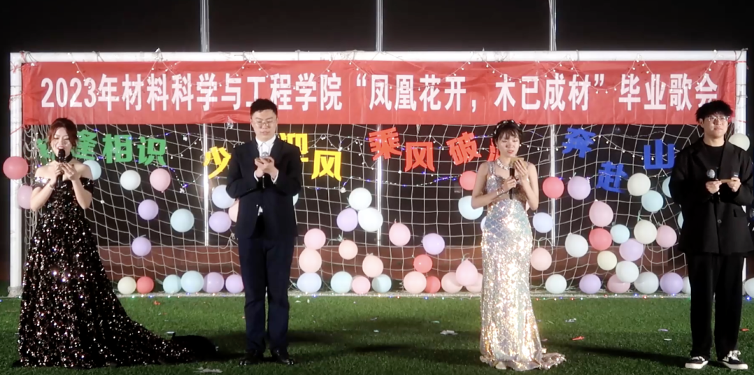 “凤凰花开,木已成材”毕业歌会正式开始。本次毕业晚会由付智超同学、李泽睿同学、荣雯静同学、姜钰洋同学主持。