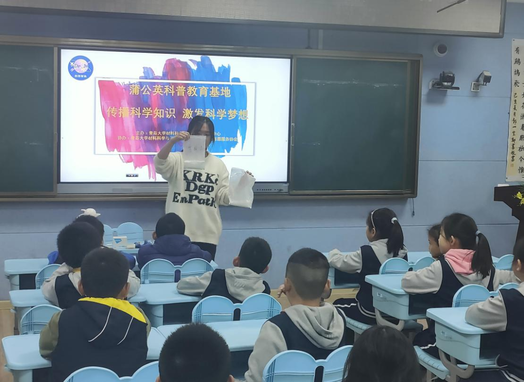 材料科学与工程实验中心与Dr.M科普驿站志愿服务协会的老师和志愿者们,依托“蒲公英科普行动”,前往青岛福林小学,与学生们进行了一场别开生面的科普启蒙活动。此次活动由“科学知识讲解”、“趣味实验展示”、“亲自动手体验”、“师生互动答疑”四部分组成。