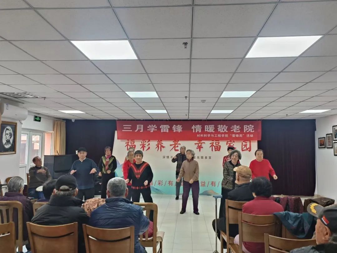 随后各个节目轮番上场,志愿者们与老人们“各显神通”。首先由何天琪演唱的《空白格》及朱彦臣演唱的《说谎》开场,活动渐入佳境。高薇和安英璟以一曲《最炫民族风》和《遇见》燃炸全场,将活动推入高潮。看过志愿者们激情的演唱,老人们的鼓乐团跃跃欲试,为我们带来了《康定情歌》和《好运来》,欢快激昂的鼓声重重地击打在每个人的心头,牵动着每个人的心弦,将现场推向另一个高潮。志愿者们以一曲《天后》稍作缓和,接下来是老人们为我们带来的极具现代化的舞蹈——尊巴舞和经典老歌——《映山红》。一曲终了,志愿者们与老人们合唱《学习雷锋好榜样》,活动也接近尾声。