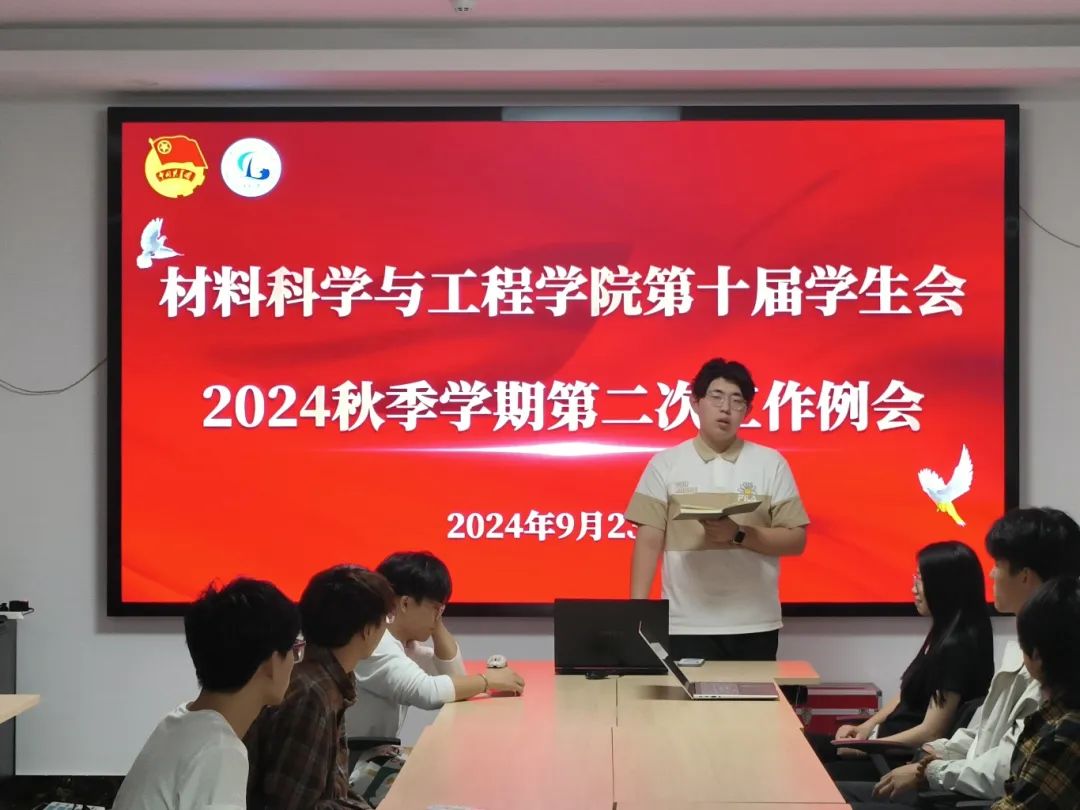 第十届学生会2024秋季学期第二次工作例会暨政治理论学习在慎思楼308会议室举行。本次会议由学生会主席法文昊主持,学生会主席曹毓婧、廖添旭,各部门负责人参加本次会议。
