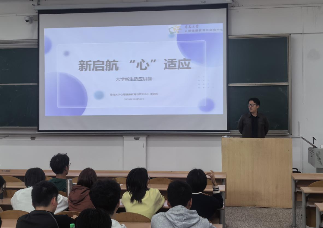 2024级新生心理健康教育于西院一教311开展。学院特邀心理健康教育与研究中心李明栋老师主讲,2024级新生辅导员胡仪老师主持,2024级全体新生参加。