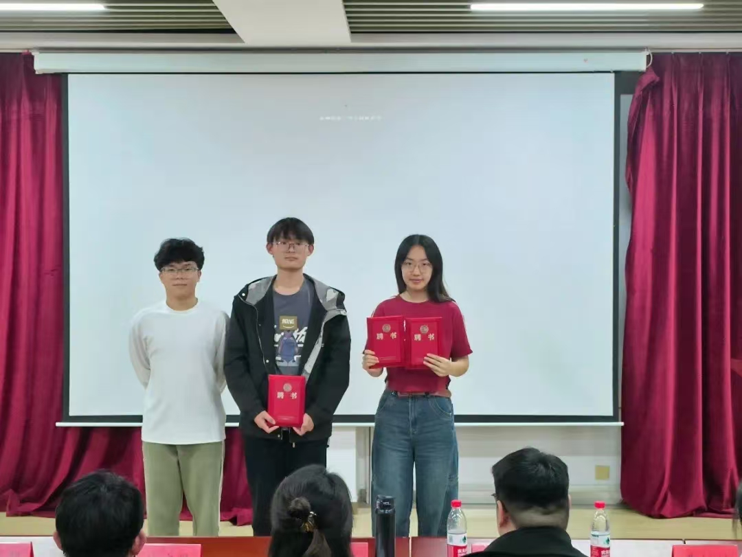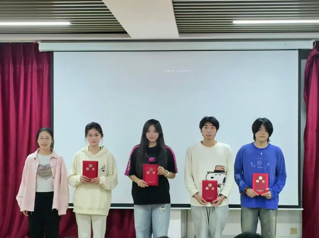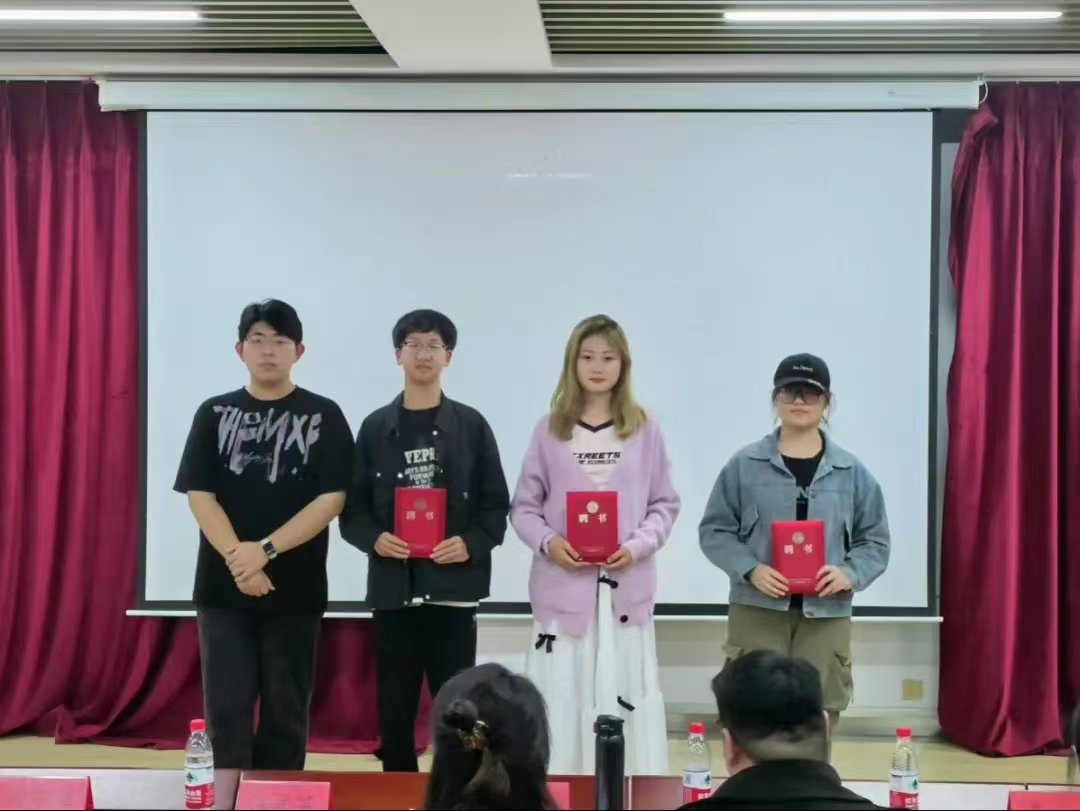 学院团委副书记王尊为第十届学生会主席团颁发聘书,主席团成员为分管部门部长颁发聘书。