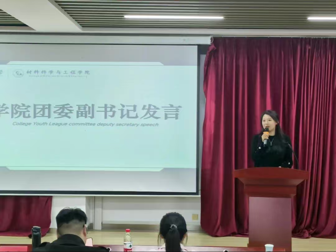 随后,学院团委副书记王尊发言。她对学生会新成员的加入表示热烈欢迎,分享了自己在学生会工作的收获,强调了实践、担当、团结的重要,并结合个人经历寄语新一届学生会,希望同学们坚定理想信念、勇于尝试、不断积累、携手共进。
