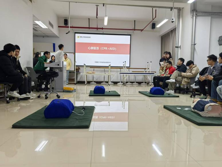 心肺复苏是每一个人都应该掌握的一项必备技能,从而在面对突发事件时能够正确应对,冷静处理,发挥作用,甚至是挽救生命。培训中,专业人员为同学们详细讲解了“心肺复苏”相关内容,通过专业理论知识与实际案例相结合,生动形象地为大家讲述了心肺复苏术的动作要领、注意事项、基础生命支持步骤和AED(自动体外除颤器)的正确使用方法等内容。通过现场演示与同学互动,详细介绍了心肺复苏每一个步骤。