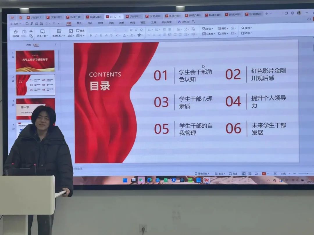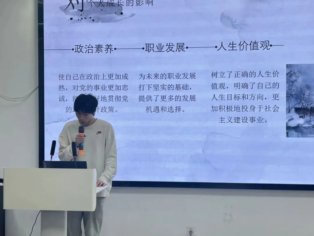 在学习感悟分享中,学员们以满腔的热忱充分展现了他们在这次培训中的丰硕成果。不仅交流了学习心得和实践经验,还就学生干部应如何以身作则、勇于担当进行了深入探讨。大家一致认为,学生干部应具备坚韧不拔的心理素质,面对困难和挑战时能够保持冷静和乐观,以积极向上的态度引领团队前行。此外,培训期间观看的电影《金刚川》也给大家留下了深刻印象,影片中的英雄人物在逆境中展现出的顽强拼搏精神,进一步坚定了学员们服务人民、奉献社会的决心。随着最后一位学员的精彩汇报,本次培训活动圆满落下帷幕。我们相信,通过培训班的精心培养,每一位学员都将成为传播马克思主义真理的璀璨火种,将理想的光芒播撒到更多人的心田。
