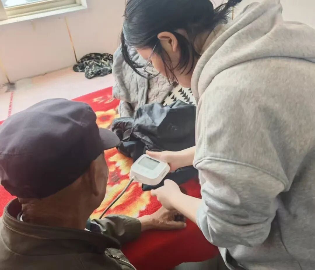 志愿者们来到老党员家中,送上了温暖的关怀与诚挚的问候。大家围坐在一起,认真倾听老人们讲述那些年代的革命故事与投身建设的奋斗历程,言语间充满了敬佩。随后,志愿者们帮助老人整理房间、打扫卫生,还拿出血压计,为老人耐心测量并记录血压状况,询问老人的身体近况。