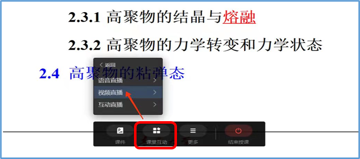 点击“课堂互动”,选择“视频直播”