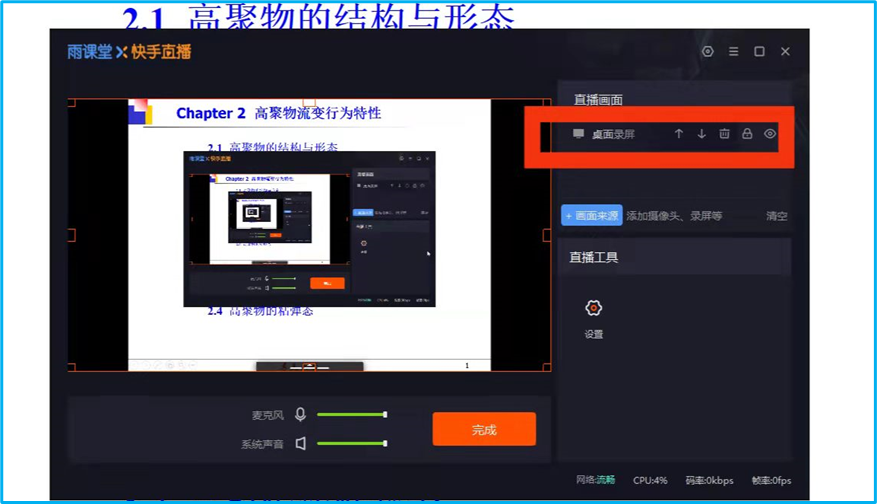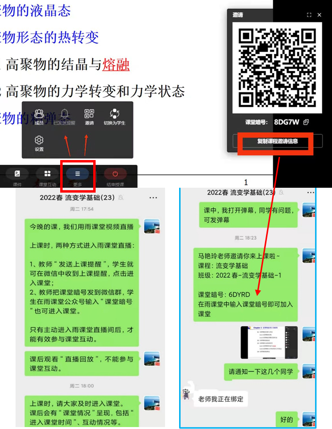 本周采用雨课堂5.2视频直播分享屏幕给研究生上了《流变学基础》,很流畅,不卡顿,课间没敢停,学生学习状态良好,全到齐,但有个别同学用本科生学号听课,显示为“旁听生”,换绑定为研究生学号后才顺利进入班级课堂。课中积极互动,一堂课就发了近百条弹幕。整理了本堂课的授课体会,分享给大家,仅供参考。