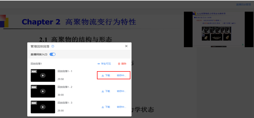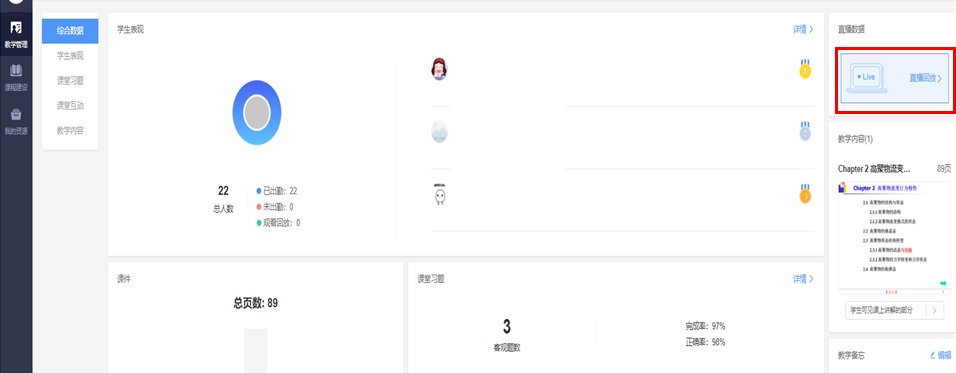 教学日志 - 本堂课的综合数据 - 直播回放 - 直播回放管理 - 下载