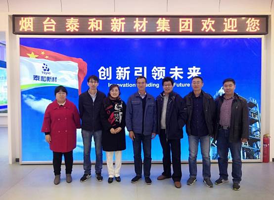11月27日,院党委书记万宗喜、院长隋坤艳、副书记张新柏和副院长黄林军一行赴烟台市,与泰和新材料股份有限公司就校企合作、产学研融合等事宜进行交流洽谈,并签署校企战略合作框架协议。泰和新材料股份有限公司副总经理、总工程师马千里,人力资源部部长宫倩华等参加了活动。