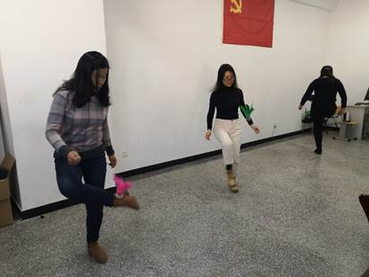 2019年3月7日上午9点,学院女教职工集中在科技园D座403会议室,开展了知识问答、游戏比赛(比划猜词)、趣味运动(踢毽子)等一系列活动,大家积极参与,所有的女教职工都在赛场上尽力展现她们的风采,现场气氛热烈。