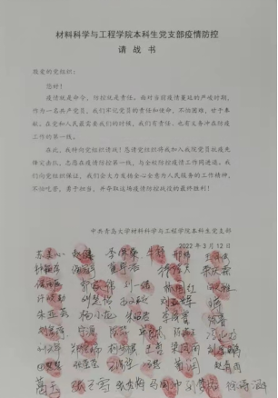 所有学生党支部纷纷提交疫情防控请战书,在学院党委的指导下迅速集结成立了由279人组成的5支抗疫先锋突击队。