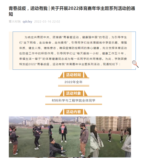 为了应对疫情带来的不利影响,帮助同学们调节紧张情绪,舒展身心,更加精力充沛地投入到学习、科研中,学院特别举办“青春战疫,运动有我”--苏畅av