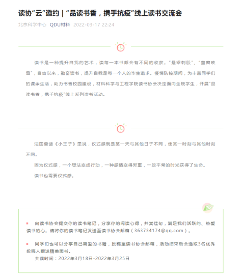 学院举办“品读书香,携手抗疫”线上读书交流会等活动,组织各年级同学积极参与学校举办的各类文化讲座,丰富同学们的课余生活,助力书香校园建设。