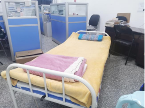 学院教科办老师,把年幼的孩子安顿在家,吃住在办公室,每日协调居家办公老师在线上教学遇到的问题。恰逢研究生录取调剂咨询周期,24小时接待值班电话咨询。