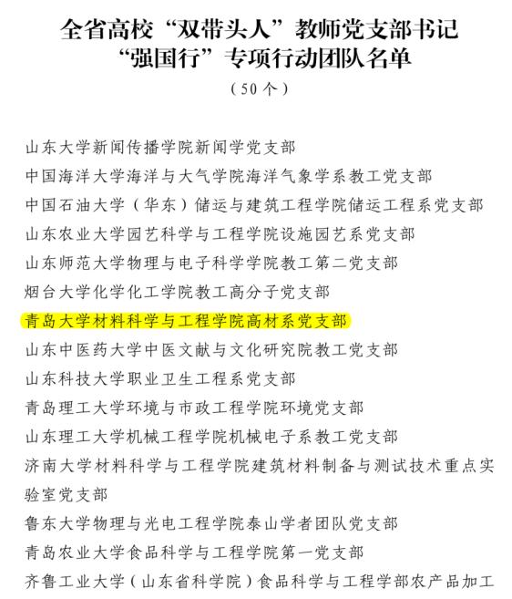 近日,中共山东省委教育工委公布了全省高校“双带头人”教师党支部书记“强国行”专项行动团队名单,全省共50个“双带头人”团队通过专家评审,苏畅av