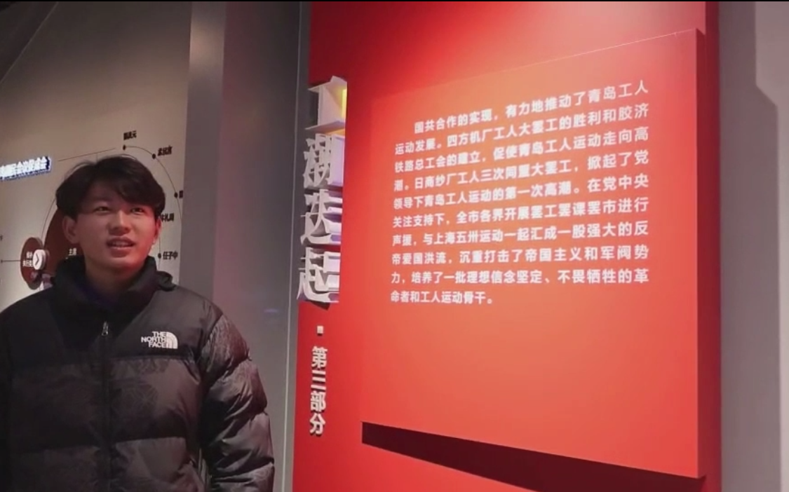 青岛市党史纪念馆坐落于四方区海岸路18号,毗邻胶济铁路,是青岛市爱国主义教育基地。为了让此次党史纪念馆研学之行更加入脑入心,特别安排同学们以小组为单位现场录制微党课,将参观学习的内容以及自己的理解感悟创造性地转化输出为优秀作品。