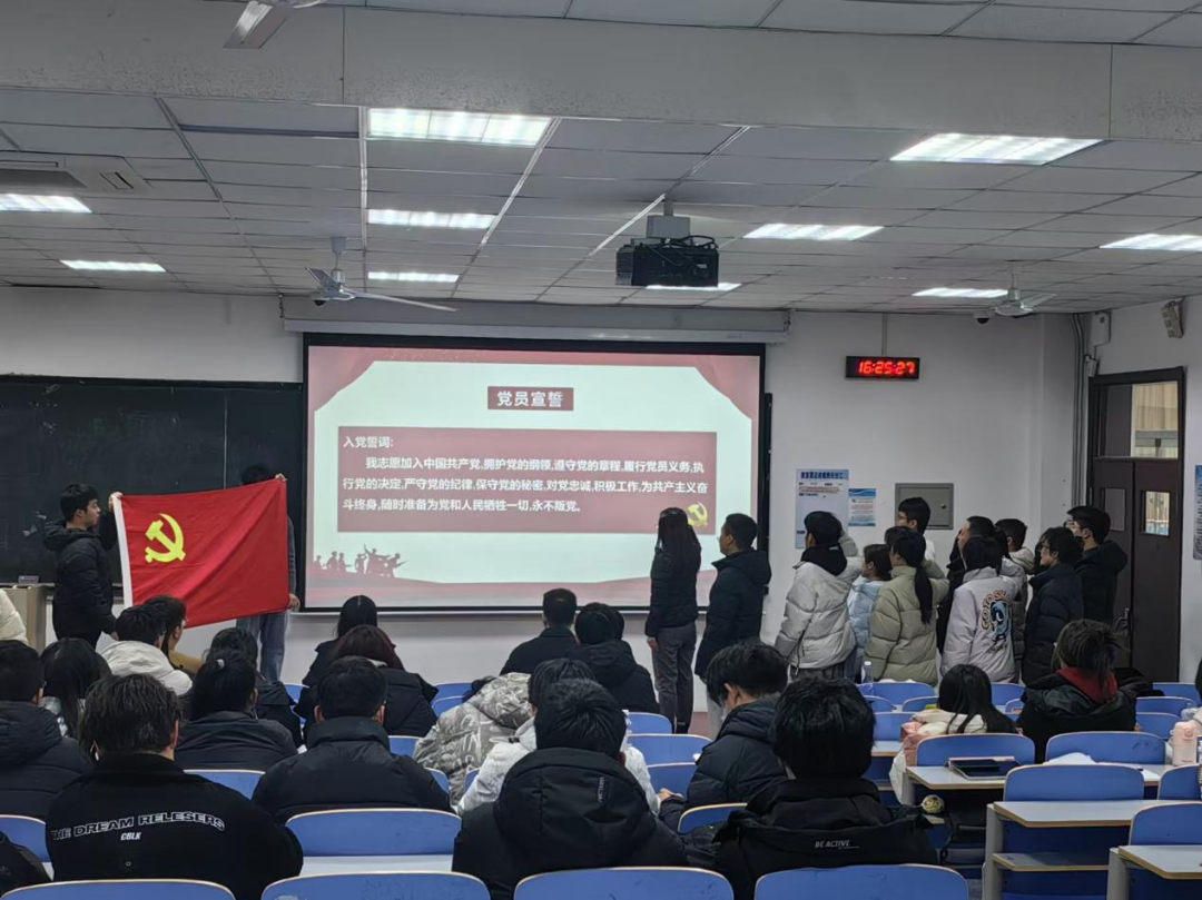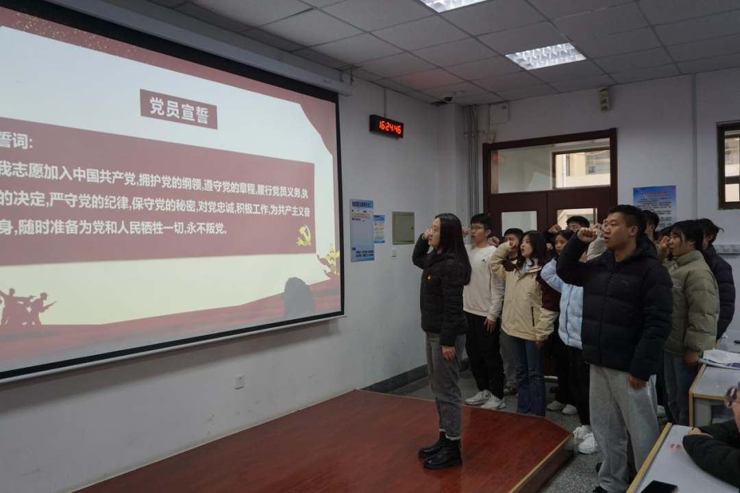 在博学楼104教室举行预备党员宣誓仪式,旨在教育引导新发展党员坚定理想信念,牢记入党初心,增强党性意识。学院本科生党支部书记宋淑婷,博士研究生党支部书记毕英娜、硕士研究生第一党支部书记张育恒、硕士研究生第三党支部书记徐千懿、硕士研究生第二党支部副书记于本涛,以及全体2024年秋季学期新发展党员和入党积极分子出席本次主题党日活动。
