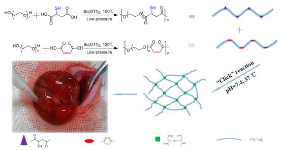 研究院进行了一系列原始创新的研究,自主开发了可注射水凝胶,将其用于腹腔术后肠粘连防治,该水凝胶材料制备简易,生物相容性良好、可生物降解,可规模化生产,有望在未来投入临床应用(图6,Polymer Chemistry, 2014, 5, 2018)。