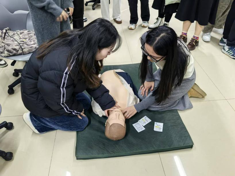 心肺复苏是每一个人都应该掌握的一项必备技能,从而在面对突发事件时能够正确应对,冷静处理,发挥作用,甚至是挽救生命。培训中,专业人员为同学们详细讲解了“心肺复苏”相关内容,通过专业理论知识与实际案例相结合,生动形象地为大家讲述了心肺复苏术的动作要领、注意事项、基础生命支持步骤和AED(自动体外除颤器)的正确使用方法等内容。通过现场演示与同学互动,详细介绍了心肺复苏每一个步骤。