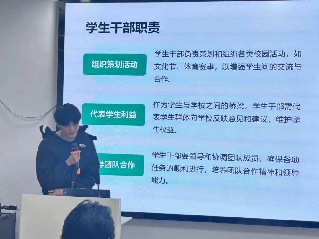 在学习感悟分享中,学员们以满腔的热忱充分展现了他们在这次培训中的丰硕成果。不仅交流了学习心得和实践经验,还就学生干部应如何以身作则、勇于担当进行了深入探讨。大家一致认为,学生干部应具备坚韧不拔的心理素质,面对困难和挑战时能够保持冷静和乐观,以积极向上的态度引领团队前行。此外,培训期间观看的电影《金刚川》也给大家留下了深刻印象,影片中的英雄人物在逆境中展现出的顽强拼搏精神,进一步坚定了学员们服务人民、奉献社会的决心。随着最后一位学员的精彩汇报,本次培训活动圆满落下帷幕。我们相信,通过培训班的精心培养,每一位学员都将成为传播马克思主义真理的璀璨火种,将理想的光芒播撒到更多人的心田。