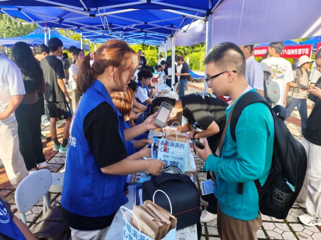 “学长学姐的来信”封装实用干货:毕业生祝福、选课技巧、食堂隐藏菜单、社团推荐等,字里行间传递真挚关怀。现场派发“明信片盲盒”,随机赠送校园风景片,背面还藏有学长学姐手写祝福,以惊喜开启崭新旅程。报到全程融入学院的创新活力与人文温度。