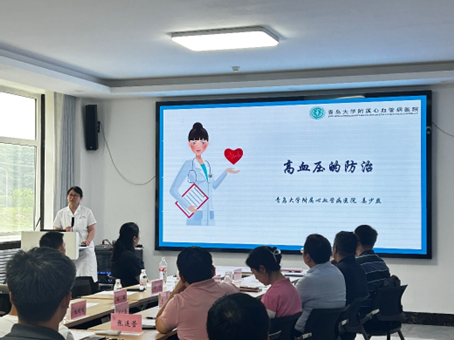 附属心血管病医院心内四科主任姜少燕作了高血压预防与治疗的健康讲座,她为大家详细讲解了高血压疾病的病因、预防、治疗等相关问题;在健康咨询环节,附属心血管病医院医护人员现场为老师提供血压测量、心电图检查、体检报告解读等服务。针对部分体检报告中异常指标,分析成因,提出科学合理化建议,并建立了党建聚力互动微信群,为老师们提供长期健康服务。